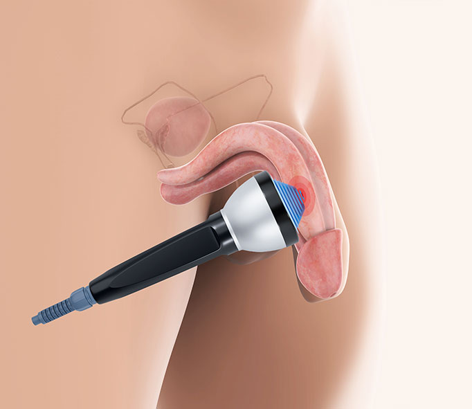- 3. WENDEN SIE DIE STOSSWELLEN AUF DIE ERSTE ZONE AN DER RECHTEN SEITE DER PENISWURZEL AN