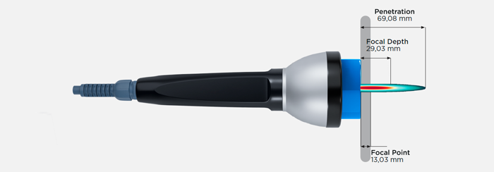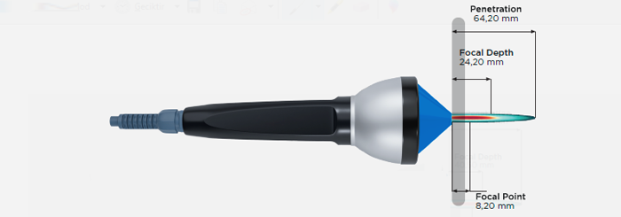 Die maximale Gewebedurchdringung ist bei fokussierten Stoßwellen höher. Auf diese Weise wird die therapeutische Wirkung verstärkt.