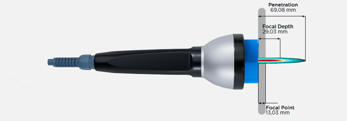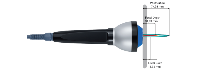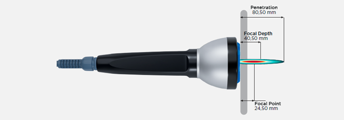 Die maximale Gewebedurchdringung ist bei fokussierten Stoßwellen höher. Auf diese Weise wird die therapeutische Wirkung verstärkt.
